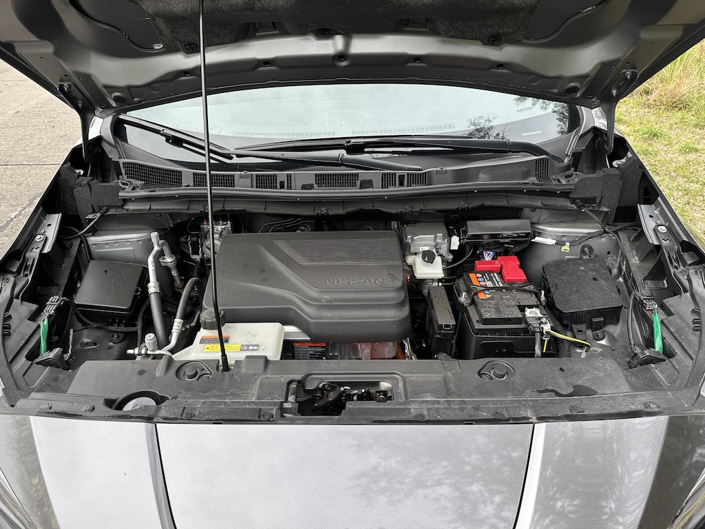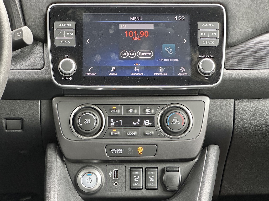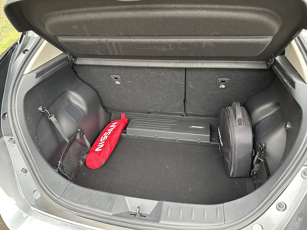 En su interior, incorpora nuevo volante y pantalla de ocho pulgadas junto con un renovado sonido premium Bose. Se asocia al sistema multimedia NissanConnect, con integración Android Auto y Apple CarPlay. No tiene cargador inductivo pero sí tomas USB. Cuenta con climatizador automático. En los asientos de atrás, el piso queda alto por la ubicación de las baterías. Baúl correcto para su segmento (435 L) y rueda de auxilio temporal y colocada debajo con una jaula que tienta a su robo.