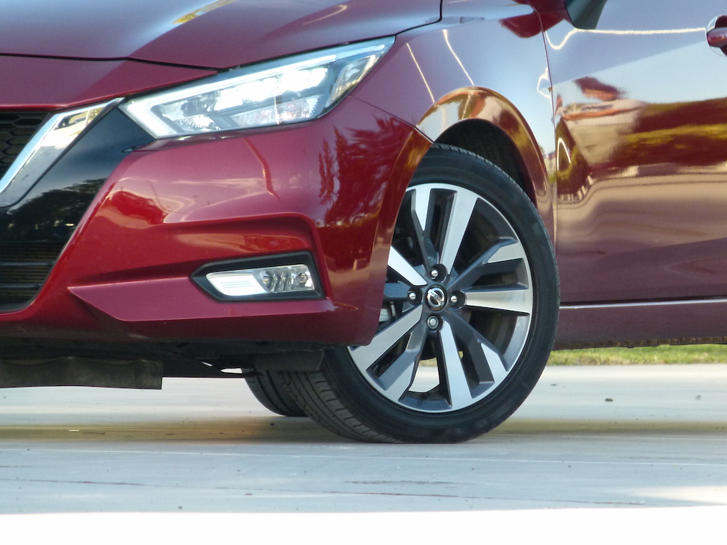 Con una postura que se eleva claramente hacia atrás, el Versa se destaca por su modernidad. Las formas dinámicas se caracterizan por trazos rectos, y las llantas de 17 pulgadas le quedan muy bien. Además tiene la altura ideal, incluso parece tener la postura de un auto europeo, por lo que queda realmente bien plantado al piso.