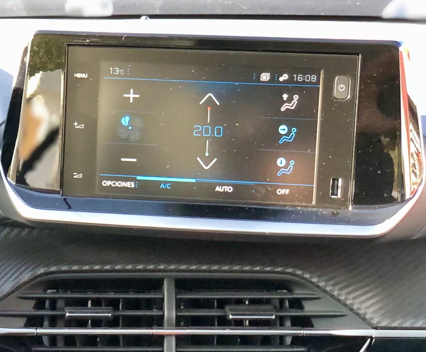 Por debajo, varias teclas con formato tipo avión. Hay dos entradas USB: la superior es la que lo conecta con el Apple Carplay y Android Auto.