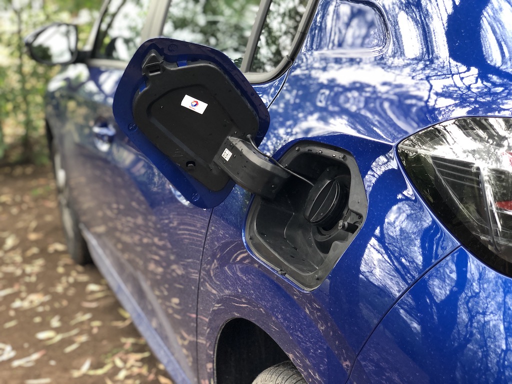 La puerta de acceso al tanque de nafta es mucho más voluminosa: está preparado para el enchufe de la versión eléctrica. Las llantas son de 16 pulgadas pero, probablemente, unas 17 le sentarían aún mejor.