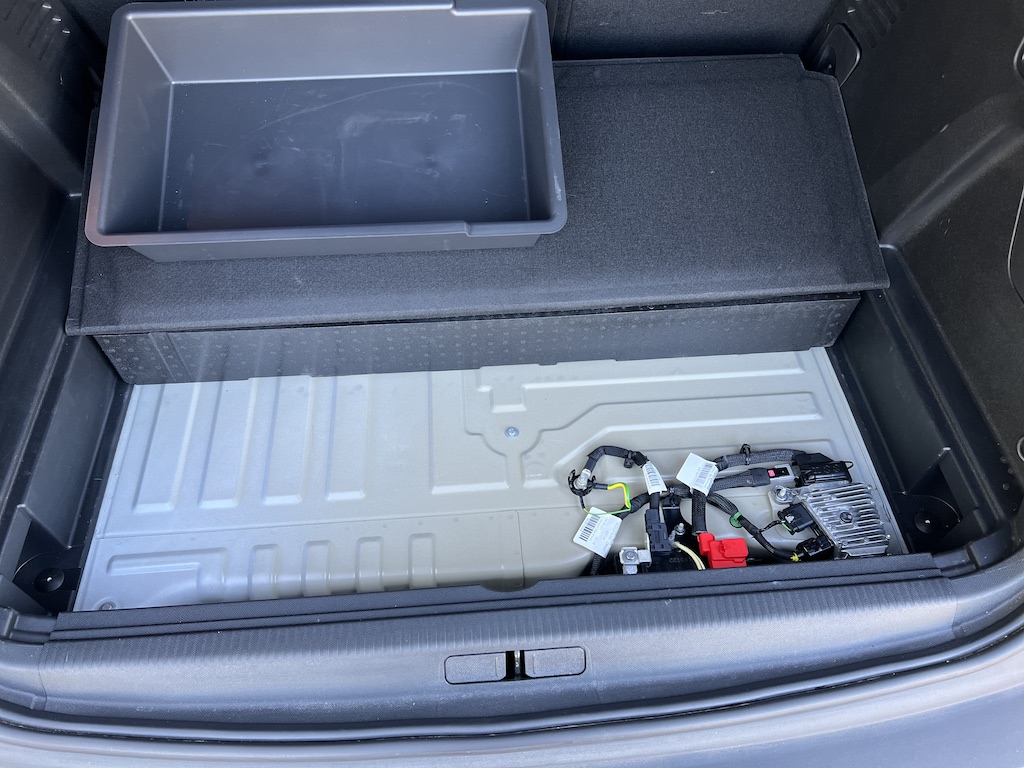 Por detrás, el espacio es suficiente, con salidas de climatización y tomas para cargar dispositivos. En el baúl, no encontramos un auxilio tradicional ni siquiera uno del tipo temporal. Solo un kit de reparación e inflado, debido al espacio para las baterías.