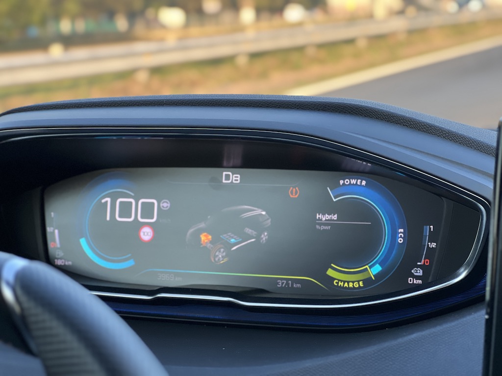Al igual que los modelos THP y HDI, cuenta con un selector para alternar los modos de conducción. En el modo Electric, la tracción es 100% eléctrica y permite alcanzar una velocidad máxima de 135 km/h.