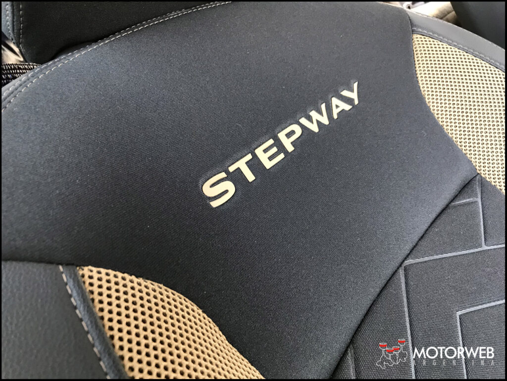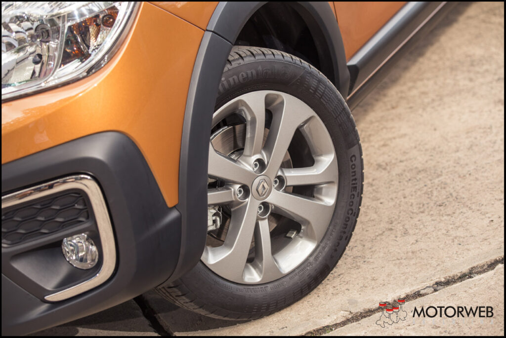 Kangoo stepway utiliza además, el repertorio de plásticos decorativos en las zonas bajas de zócalos, pasa ruedas y paragolpes, «envolviendolo» en todo su perímetro. Es parte del lenguaje de otras variantes Stepway de Renault, incluyendo una suspensión (apenas) más elevada que los demás Kangoo de pasajeros y un portaequipajes sobre el techo, que habrá que tener cuidado al cargarlo porque fácilmente se superan los 2 metros de altura total del auto. Calza neumáticos de uso callejero normal en medida 195/65 y llanta de aleación de 16″.