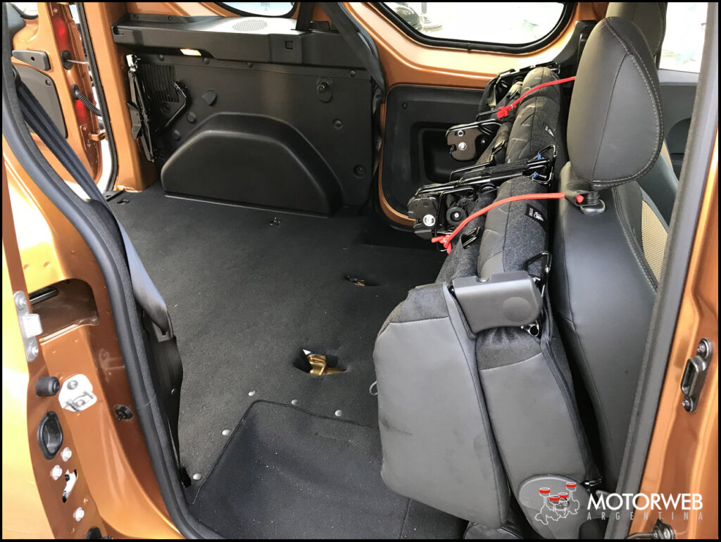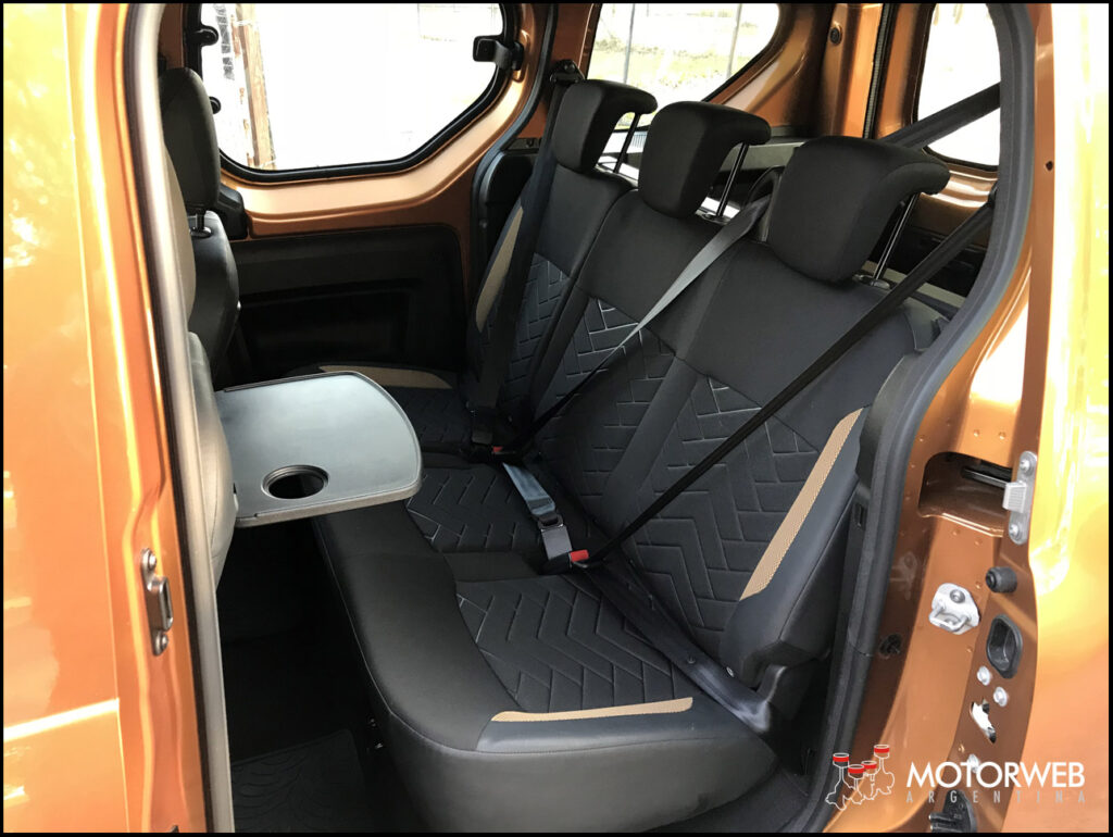 Las plazas traseras gozan del ancho de la carrocería y muestran tres lugares bien definidos, cada uno con su apoyacabezas regulable en altura y su cinturón de seguridad inercial de 3 puntos, otro ítem de seguridad a destacar en el nuevo Kangoo. Cuenta con tres juegos de ganchos ISOfix, un plus a la hora de comparar con otros productos familiares, ya que no abunda esta opción en nuestro mercado.