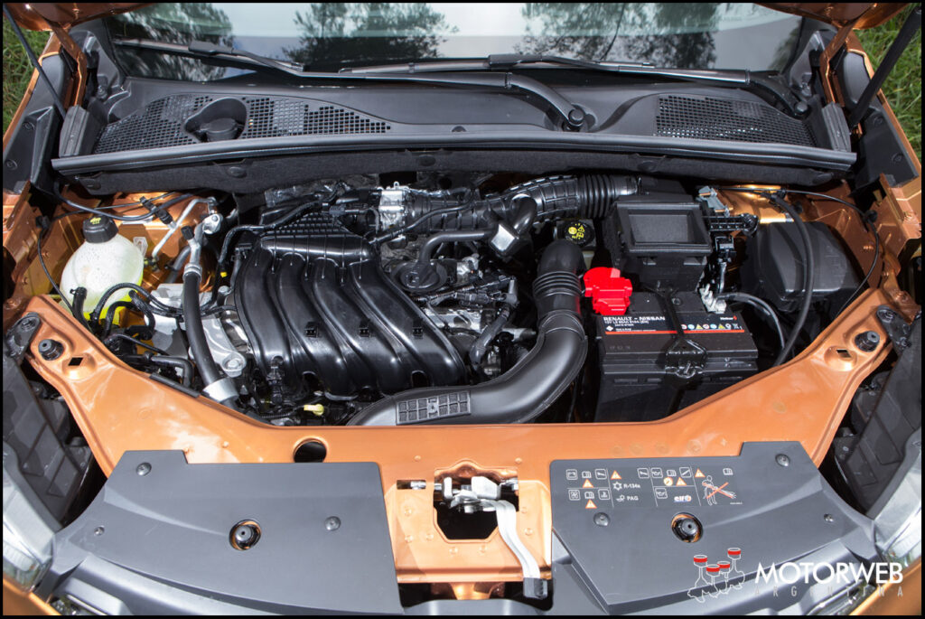 Por el lado del motor, monta el ya conocido 1.6 litros llamado SCe (HR16), con una potencia máxima de 114cv, recientemente introducido en la gama del Captur. Tiene 156 Nm de torque maximo, y distribución a cadena, algo que simplifica los costos de mantenimiento y que mucha gente busca específicamente como una cualidad del motor. Es un motor que la marca declara que pesa unos 30 kilos menos que el anterior 1.6 utilizado en el anterior Kangoo. La caja es una manual de 5 relaciones.