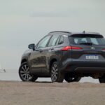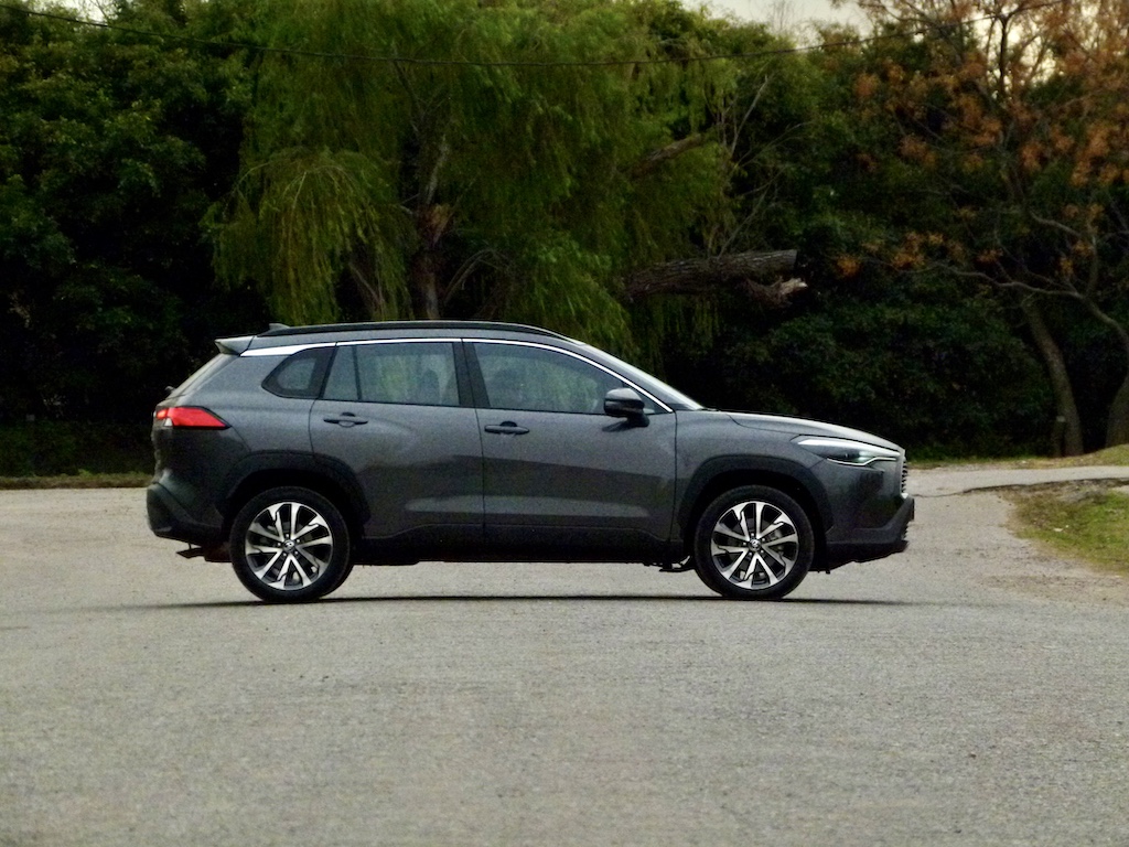 El diseño exterior del Toyota Corolla Cross muestra líneas musculosas, principalmente, en el remate trasero. La trompa es bastante común a los modelos de la marca, por lo que no causa demasiada impresión. Lo que sí tiene detalles que la realzan, entre ellos, el aplique cromado sobre la parte superior de la línea de ventanillas. Atrás tiene un aire a la Rav4, aunque con aristas más suaves.