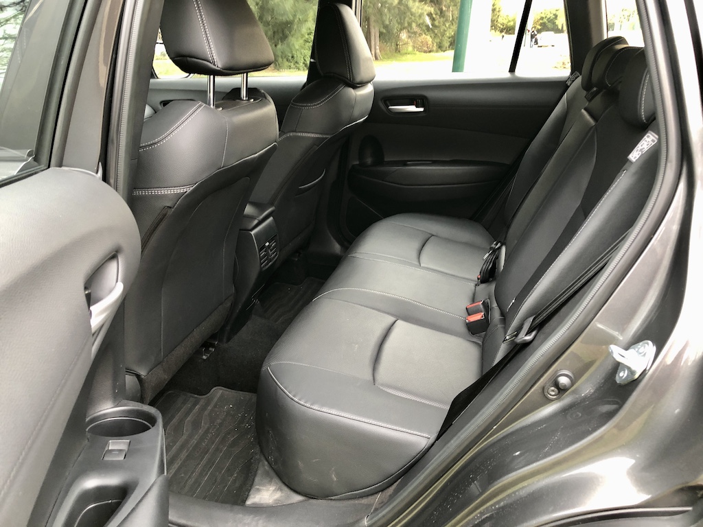 ¿Qué resigna el Corolla Cross frente al sedán? Empleando la misma base, el Cross es unos 17 centímetros más corto que el Corolla Sedán, y a su vez tiene 6 centímetros menos de distancia entre ejes. Ahora eso no termina siendo una contra, ya que los pasajeros ingresan de una forma más cómoda, mientras que la altura libre al techo es superior. Solo se resigna algo de espacio para las piernas, pero no mucho. Además, los asientos traseros son reclinables, y rebatibles.