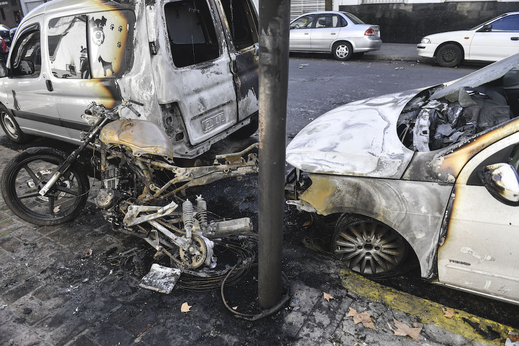 En tanto, en Darwin al 200, hubo dos motos incendiadas que afectaron a otros autos, un Toyota Etios y un Peugeot 206. En la calle Vera al 1200, otra moto fue incendiada y afectó a un Volkswagen Up estacionado a su lado.