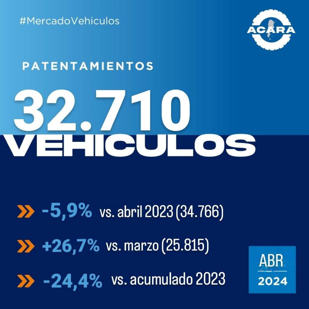 En abril la venta de autos 0Km fue de 32.710 unidades, lo que representa una baja del 5,9% interanual. Así lo informó la Asociación de Concesionarios de Automotores de la República Argentina (Acara).