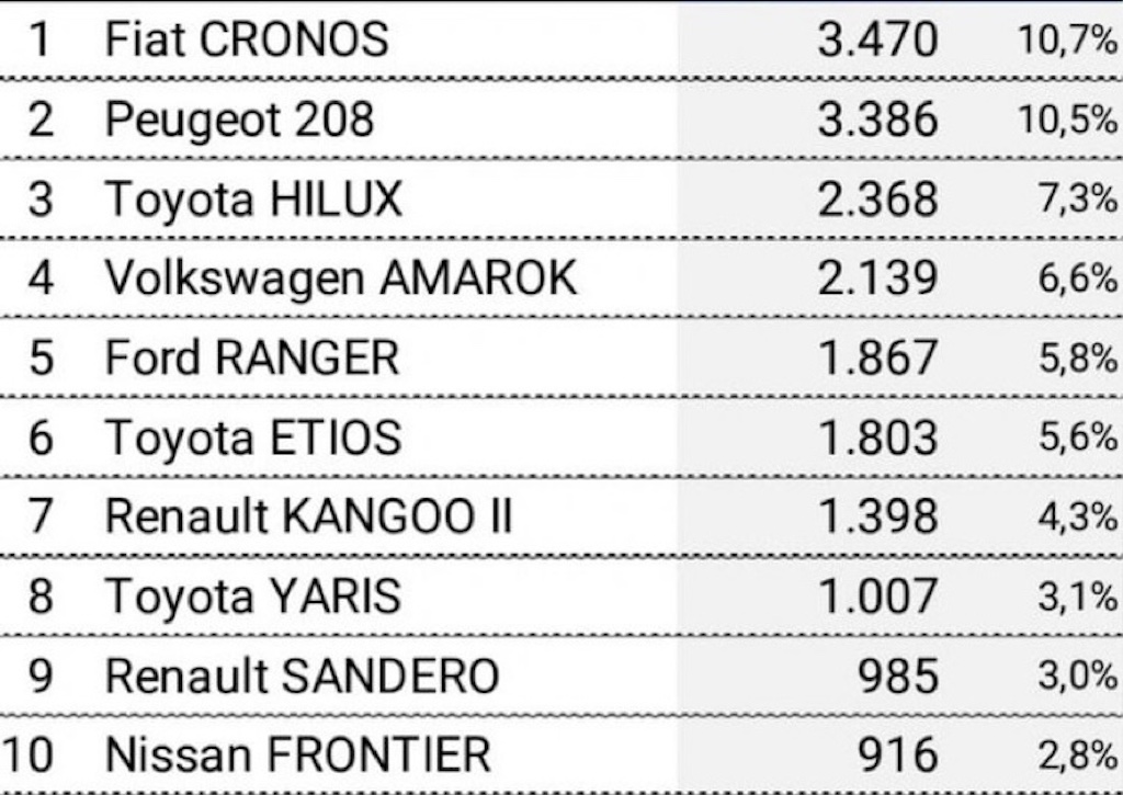 La venta de vehículos 0Km subió 7,7% interanual en abril. El número de unidades patentadas durante el mes pasado ascendió a 34.311. En el mismo periodo del año pasado se habían registrado 31.866 vehículos. Así lo informó la Asociación de Concesionarias de Automotores (Acara) en su habitual informe. El Fiat Cronos sigue primero pero hubo un gran desempeño del Peugeot 208.