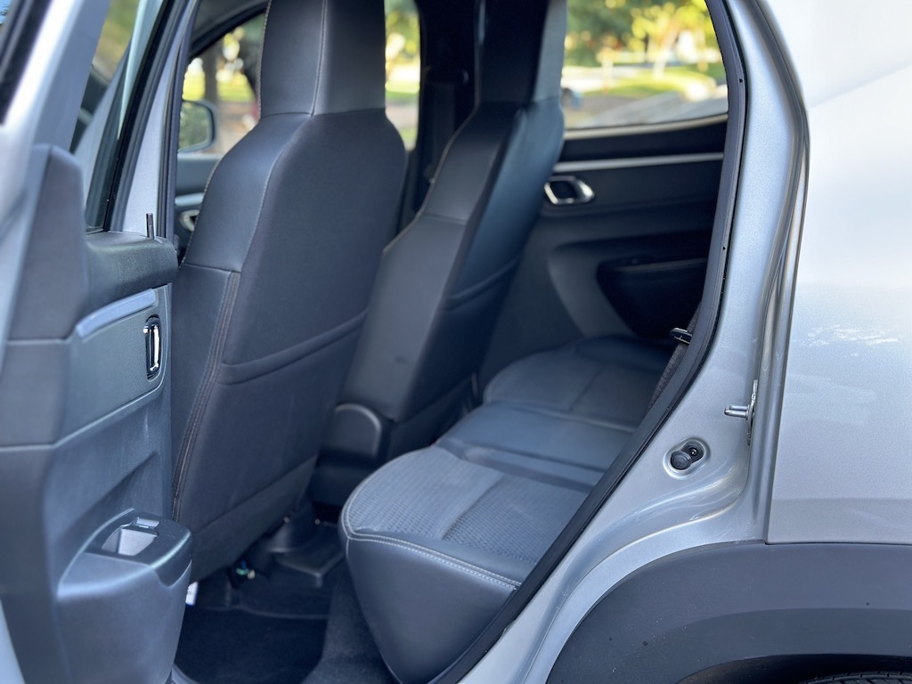 Aquí tampoco hay demasiadas sorpresas, con un habitáculo que peca de sencillo con calidad pobre y los elementos básicos. El selector de marchas es giratorio, con tres posiciones (D-N-R) y el freno de mano completamente manual. La única función a la conducción que ostenta es el modo «ECO» mediante una tecla al lado del levantavidrios del acompañante, que básicamente intensifica la retención del motor eléctrico para recuperar energía. El habitáculo cuenta con plazas traseras limitadas y un baúl bastante generoso, algo típico del modelo.