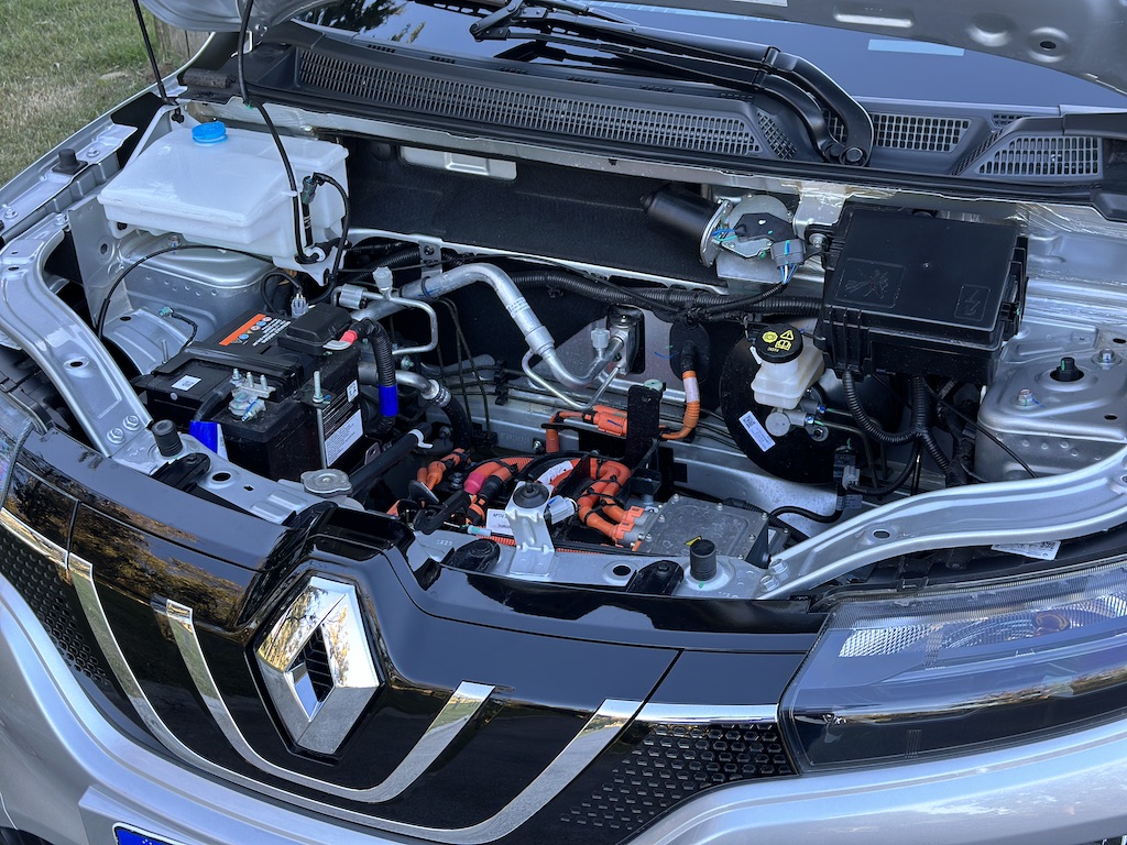 Cuenta con aire acondicionado y el sistema MediaNav del rombo que parece de generación anterior, junto a cámara de retroceso. Sin lujos, el tablero de instrumentos está compuesto por una pantalla monocromática, aunque resulta mucho más completo que el que conocíamos en el Kwid a combustión. También cuenta con dirección con asistencia eléctrica y una rueda de auxilio convencional.