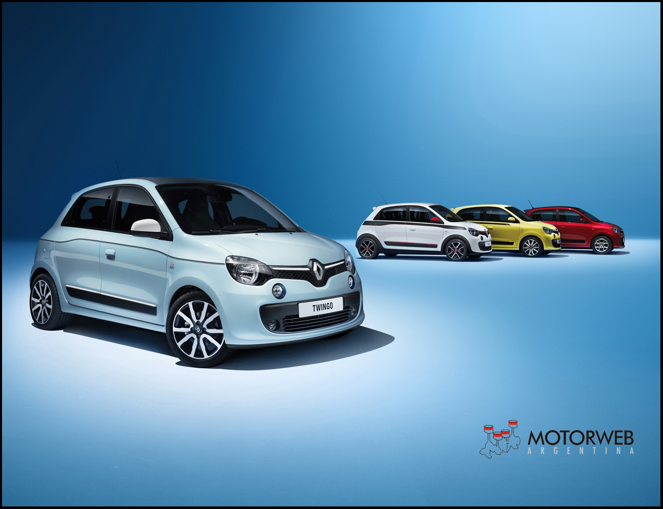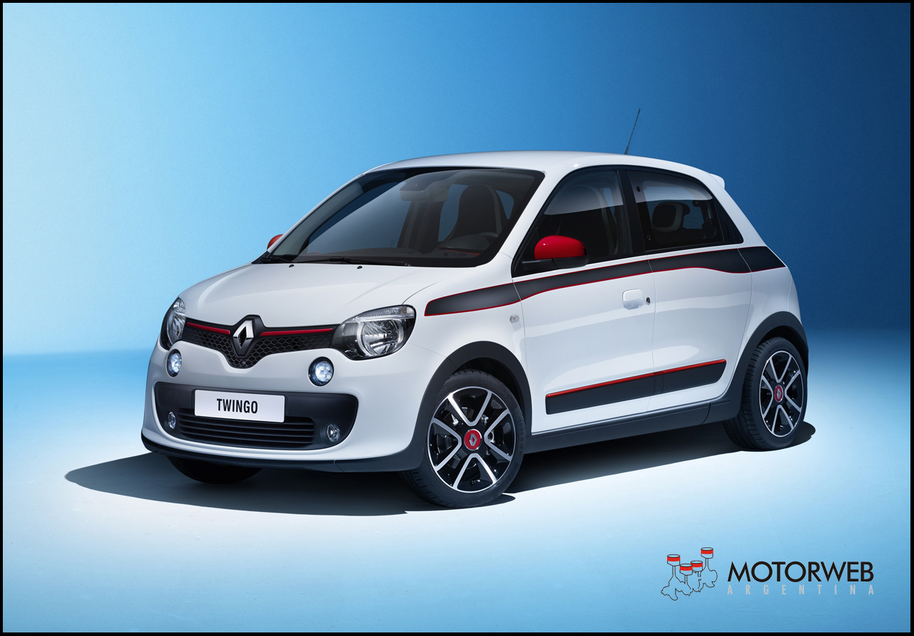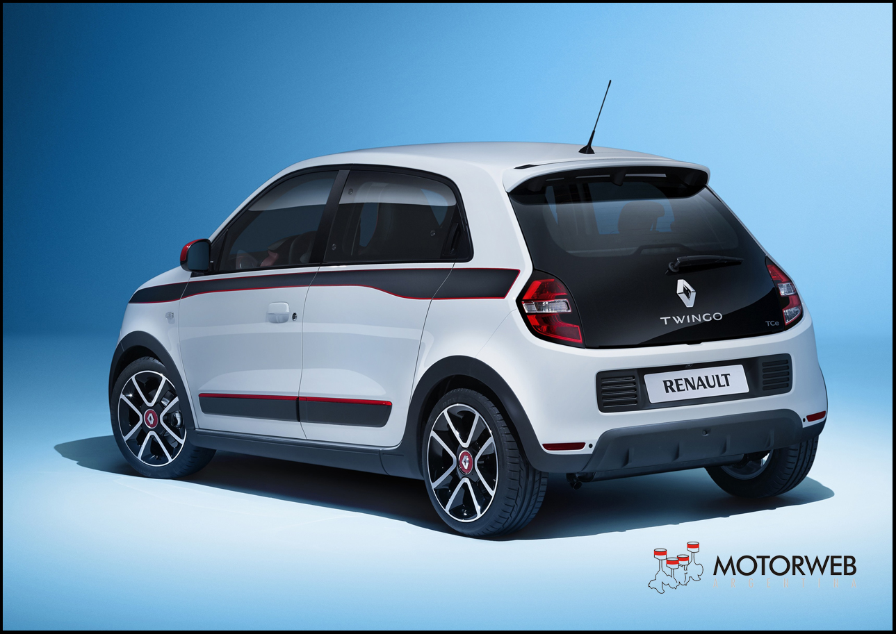 En línea con los concepts-cars Twin’Z y Twin’Run presentados en 2013, Nuevo Twingo muestra una fuerte personalidad, muy alegre. Al igual que su predecesor, el nuevo Twingo se exhibe con una paleta de cuatro colores “pop”, llenos de vida: azul claro, blanco, amarillo y rojo. Algunos elementos de diseño se inspiran directamente del R5: el alerón bien marcado y la inclinación de la luneta recuerdan al célebre R5 Turbo con motor atrás que marcó una época. La parte delantera adquiere los códigos de la nueva identidad de la marca Renault, con el logo bien destacado sobre un fondo negro. El Twingo luce una parte frontal expresiva, con faros generosos realzados por las luces intermitentes y otras luces de día redondas de LED, un mix entre la tecnología de vanguardia y el look vintage de los Twingo originales. Estos elementos de diseño otorgan a Nuevo Twingo un aire simpático y robusto, con una firma luminosa claramente identificable que resalta su marcada personalidad. El ancho portón acristalado contribuye con originalidad al modernismo de la parte trasera de Nuevo Twingo y las luces traseras se integran a la perfección prolongando dicho portón.