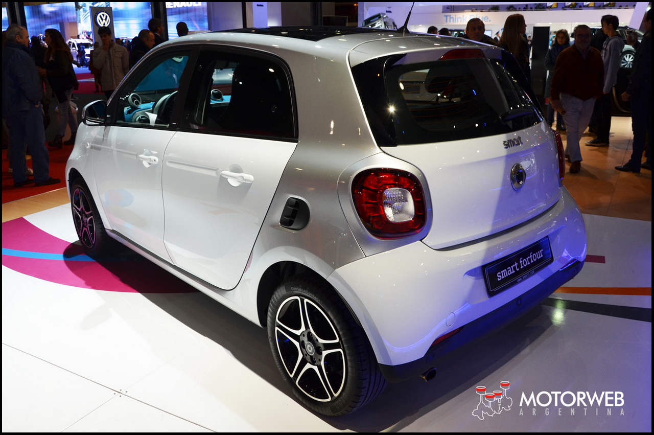 Otra de las novedades de Mercedes en el Salón es el smart forfour. Es un vehículo que se mantiene fiel a la propuesta de la marca, pero ofreciendo espacio para cuatro pasajeros. El smart forfour es un vehículo compacto, con célula tridion de seguridad, concepto bicolor y tracción trasera. En el primer trimestre de 2016 se lanzarán inicialmente versiones con un motor de 71 cv y con transmisión manual de cinco velocidades.
