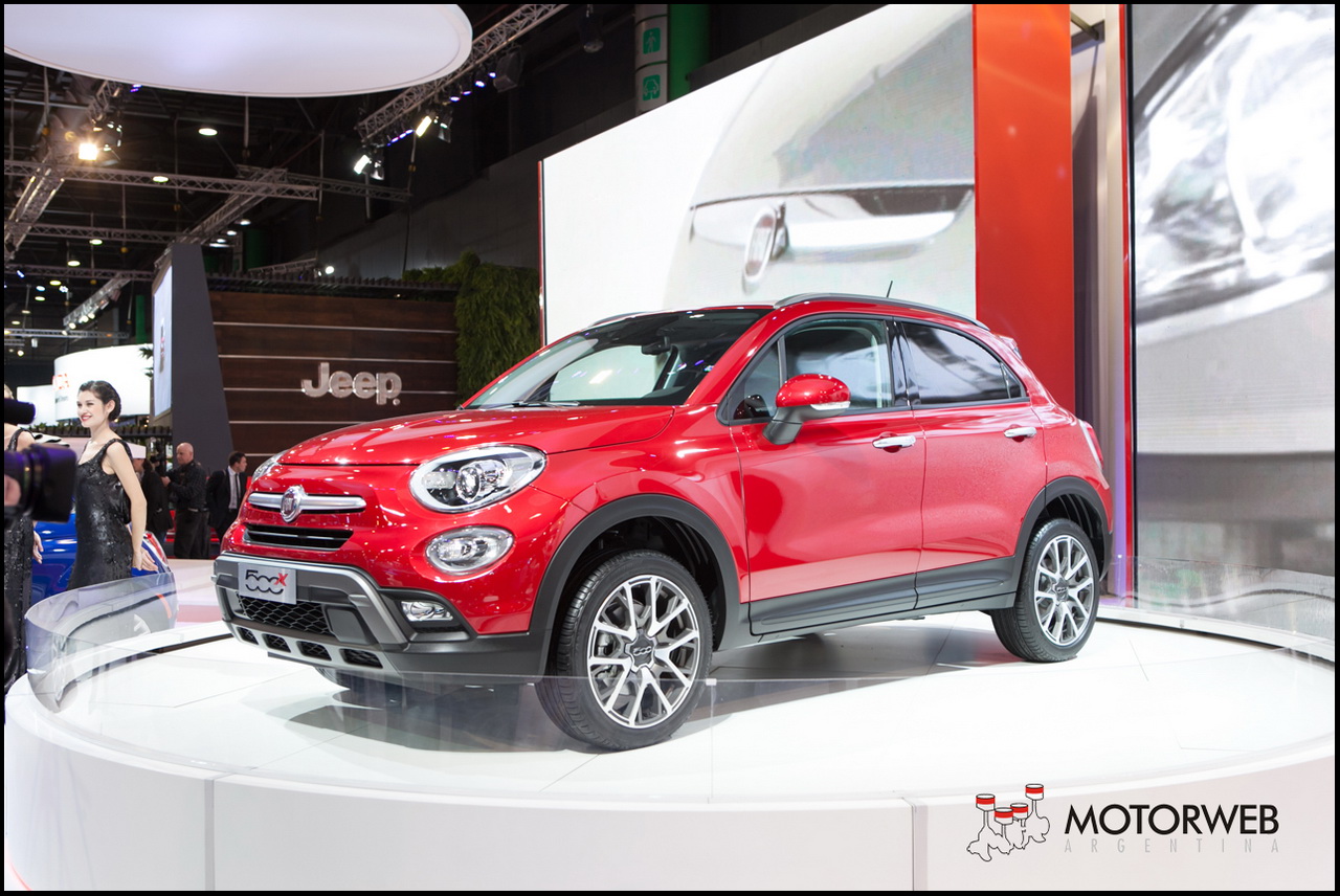 El stand de Fiat dispone de una superficie total de 883 m2 y fue especialmente diseñado para comunicar el nuevo slogan de la marca: “Haciéndote más feliz el camino”. Entre los autos exhibidos en plataformas destacadas, encontramos al SUV Compacto 500X Cross, un crossover de la familia 500 que acentúa la evolución de la marca y la tecnología a través de la madurez de su ADN. Sin planes confirmados de comercializarlo aun en nuestro país, el 500X comparte plataforma con el Jeep Renegade, ya que ambos se fabrican en Europa en la planta italiana de Melfi.
