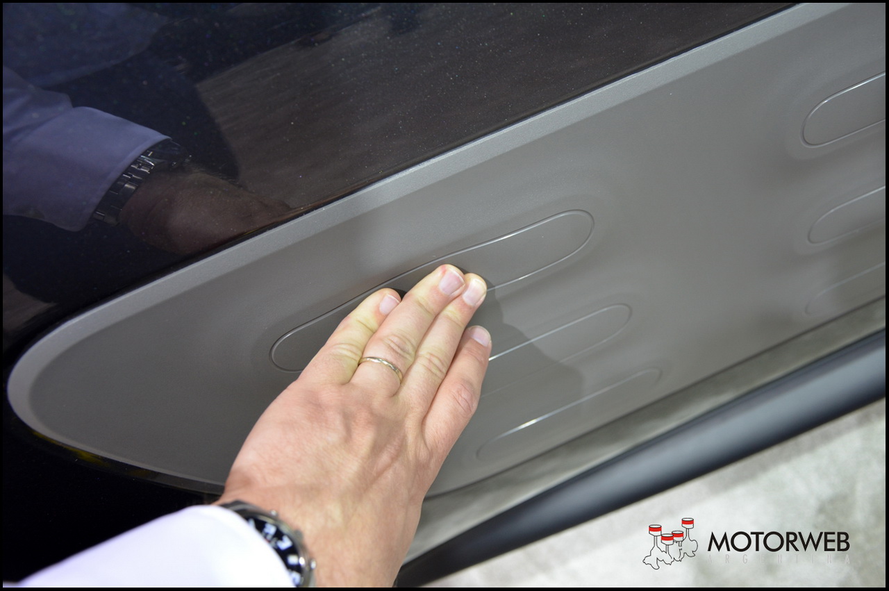 Consiste en unos apliques de plástico blando en las dos puestas, que protegen de golpes a la carrocería. Pueden ser en diferentes colores para combinarlos o contrastarlos con la carrocería. Son una marca de identidad de este modelo, en el que la funcionalidad se convierte en parte integrante del diseño. El interior, en cambio, es simple y despojado. Algo a lo que contribuye especialmente el «Airbag In Roof», una innovación que permite ofrecer más espacio al pasajero delantero y una guantera principal más polivalente y práctica.
