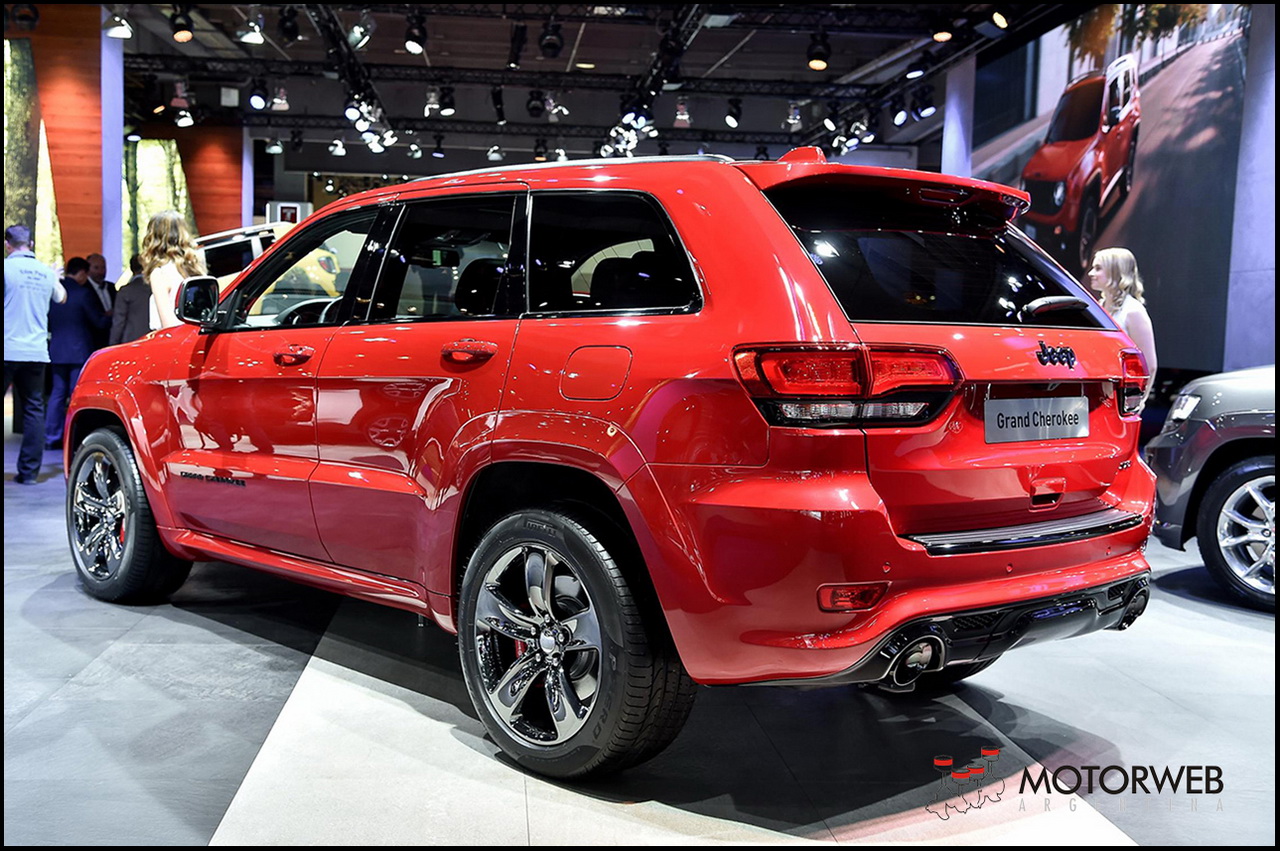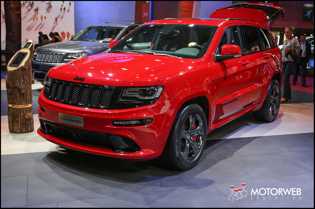 JEEP Salon Paris 2014 Motorweb 32Entre las novedades que presentó Jeep, estaba la Grand Cherokee SRT Red Vapor, la serie especial que presenta un look agresivo y la innovadora tecnología “Active Noise Cancellation” (ANC) que permite disfrutar dentro del habitáculo del sonido de los 468 CV del potente motor HEMI V8 de 6,4 litros. Es el modelo Jeep más rápido y potente jamás realizado y  se caracteriza por un look agresivo, como lo demuestran las llantas “Goliath” de cinco radios de 20″ con acabado cromado negro y varios emblemas (“SRT,  “Jeep” y “Grand Cherokee”) en negro brillante.