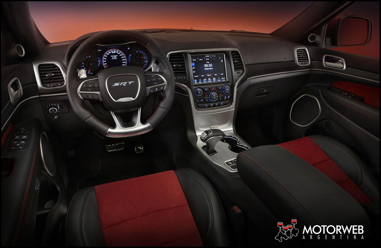 JEEP Salon Paris 2014 Motorweb 33En el interior, destacan los detalles en color Rojo Radar o con cromado brillante que resaltan el estado de ánimo lujoso y agresivo de la nueva serie especial.  E l motor asegura a esta versión SRT unas prestaciones alucinantes:  aceleración de 0-100 km/h en 5 segundos, velocidad máxima de 257 km/h y una distancia de frenado de 100 a 0 km/h en tan solo 35 metros.