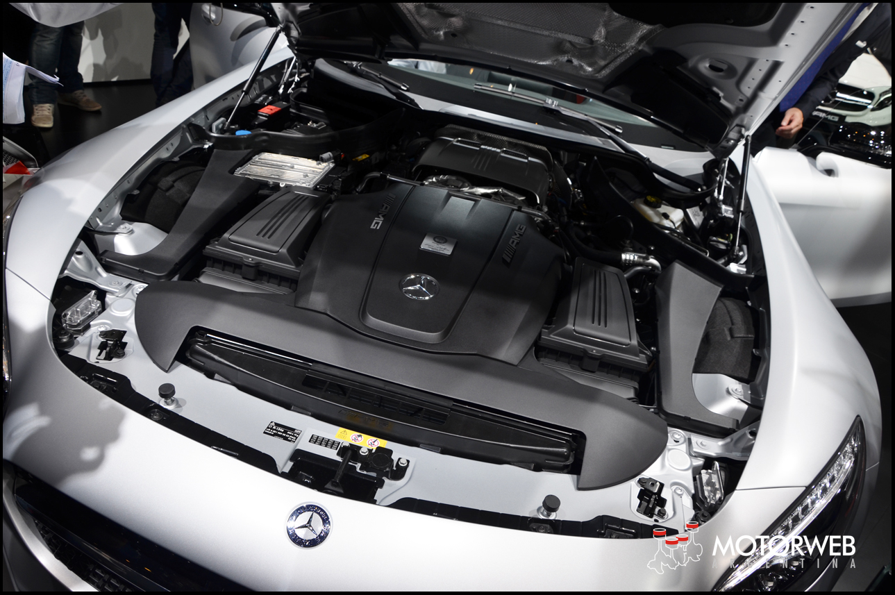 El GT es el segundo vehículo deportivo desarrollado completamente por los especialistas de Mercedes-AMG. Su concepto de motor delantero central, la disposición Transaxle de la caja de cambios y la construcción liviana de aluminio aseguran un producto emocionante. El motor es un AMG V8 biturbo de 4,0 litros, de nuevo desarrollo, que subraya la filosofía de la marca AMG. El primer motor con lubricación por cárter seco y turbocompresor doble montado en la «V» interior de las bancadas que se incorpora en un vehículo deportivo, está disponible en dos niveles de potencia: 462 CV en el modelo GT y 510 CV en el GTS.