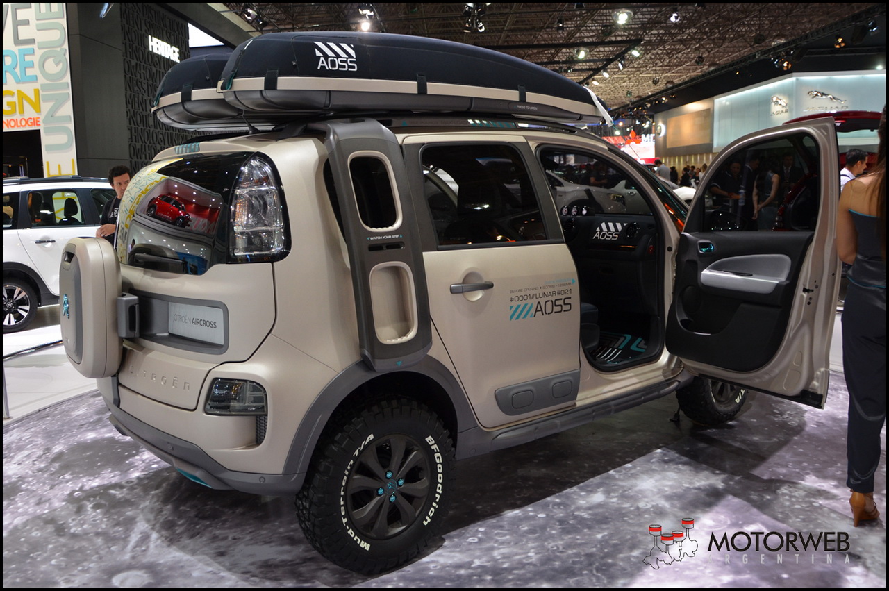 Otro de los Concept Made in Brasil aquí expuestos es el AIRCROSS Lunar, un prototipo imaginario que resalta el mundo de las aventuras llevandolo al extremo de pensar en un vvehículolunar. Está basado en el popular y exitoso C3 Aircross, un modelo muy apreciado desde su lanzamiento en el Mercosur. Muy lúdico, el denominado AIRCROSS Lunar «extrapola» la propuesta de un vehículo usado para explotar nuevos caminos. «Aún siendo un ejercicio de estilo, el AIRCROSS Lunar introduce nuevos códigos que pueden ser utilizados en toda América Latina», afirma Fabien Darche, gerente de estilo de Colores y Materiales de PSA Peugeot Citroën América Latina. Notese la aplicación del recurso de los Airbumps pequeños en las protecciones de las puertas…