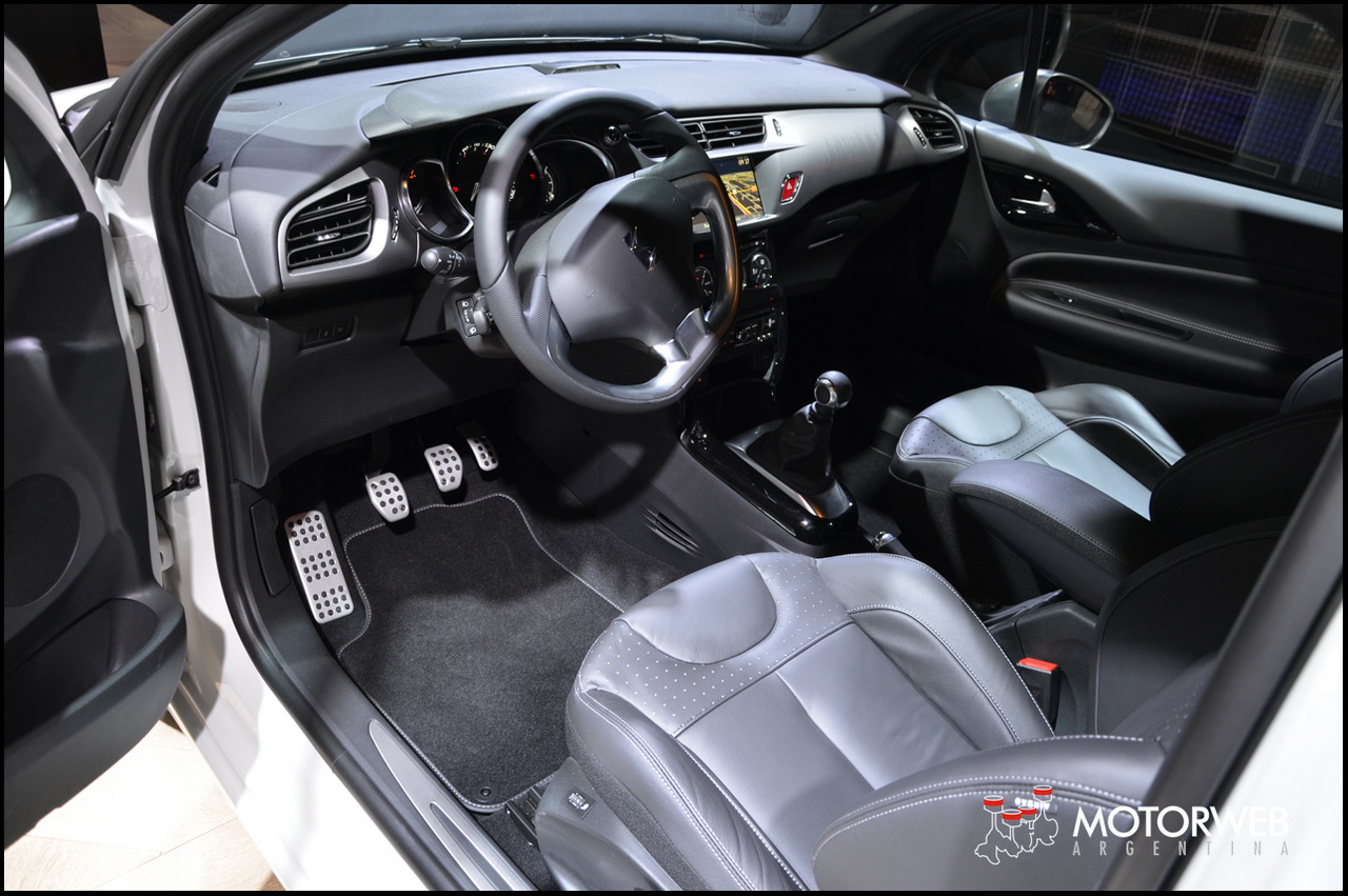 Por dentro, el Nuevo DS 3 recibió un nuevo panel agregado de sistema de navegación, cámara de marcha atrás, Sistema de Frenado Automático en Riesgo de Colisión y un sistema de audio de alta fidelidad. El motor THP 165, conjuga las ventajas de un motor de cuatro cilindros con turbo, como altos valores de potencia y torque asociados a la reducción de tamaño, bajo peso (comparado a los convencionales motores aspirados de mayor cilindrada) y bajo consumo de combustible. Con una potencia de 165 cv a 6.000 rpm, un torque maximo de 245Nm ya a 1.400 rpm; overboost en la tercera, cuarta, quinta y sexta marchas; sonido deportivo en las fases de aceleración y discreto en velocidad constante. El DS 3 utiliza cambio manual de seis marchas MCM.