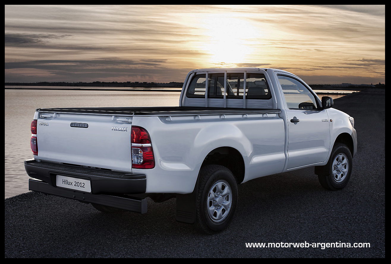 De perfil, la limpia y robusta carrocería del Hilux 2012 se potencia con el nuevo diseño de los guardabarros delanteros y traseros, que incorporan una marcada línea de carácter que fluye hacia atrás y añade una viva sensación de movimiento. El perfil del vehículo se potencia aún más gracias a las nuevas y robustas llantas de acero y aleación de 15”, y las deportivas de 17”, así como los nuevos retrovisores exteriores, con intermitentes integrados, eléctricos, plegables y calefaccionados en los modelos más completos de la gama. En la parte posterior, los nuevos grupos de faros combinados y una nueva luz de freno superior se suman al diseño saliente de los faros delanteros para maximizar la visibilidad.