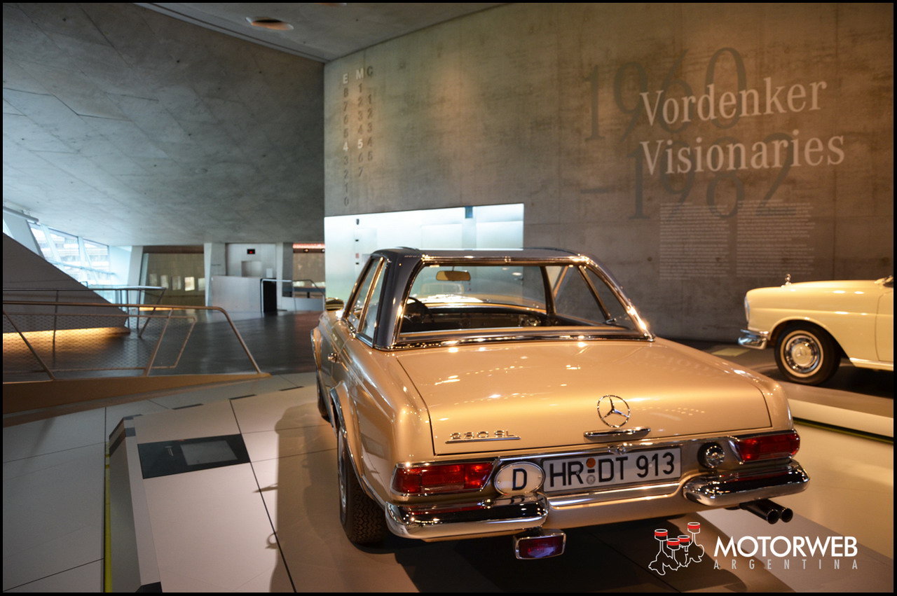 También se exhibe el modelo 220S de 1964, el primer auto con zonas de deformación programada en caso de choque, pensadas para absorber la energía del impacto. Lo que hoy ya es standard en cualquier auto, en su momento fue un avance tecnológico que usualmente debutaba primero en la Clase S, para luego ir decantando a modelos menores dentro de la marca Mercedes con el paso del tiempo.