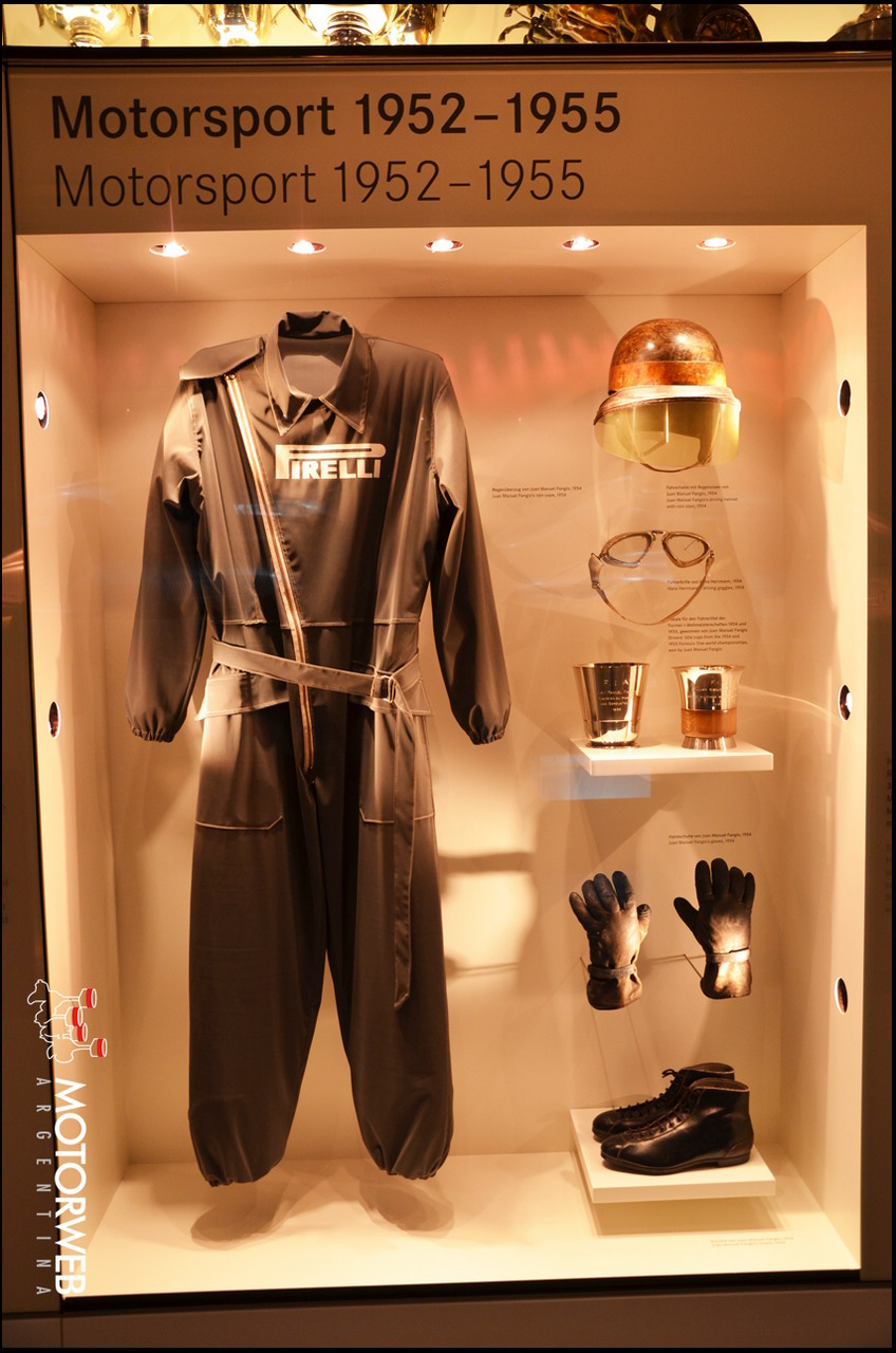 El recorrido del Museo Mercedes Benz culmina con una fantástica galería de autos de carreras en las mas variadas categorías. Por supuesto que hay un lugar de privilegio para la Fórmula Uno, y sus épicas Flechas de Plata que dominaron los circuitos en los años ’50. Para los argentinos que visiten el Museo, encontrarán no sólo autos de Fangio, si no tambien trofeos, y sus prendas de competición, como el buzo, guantes, botines y casco.