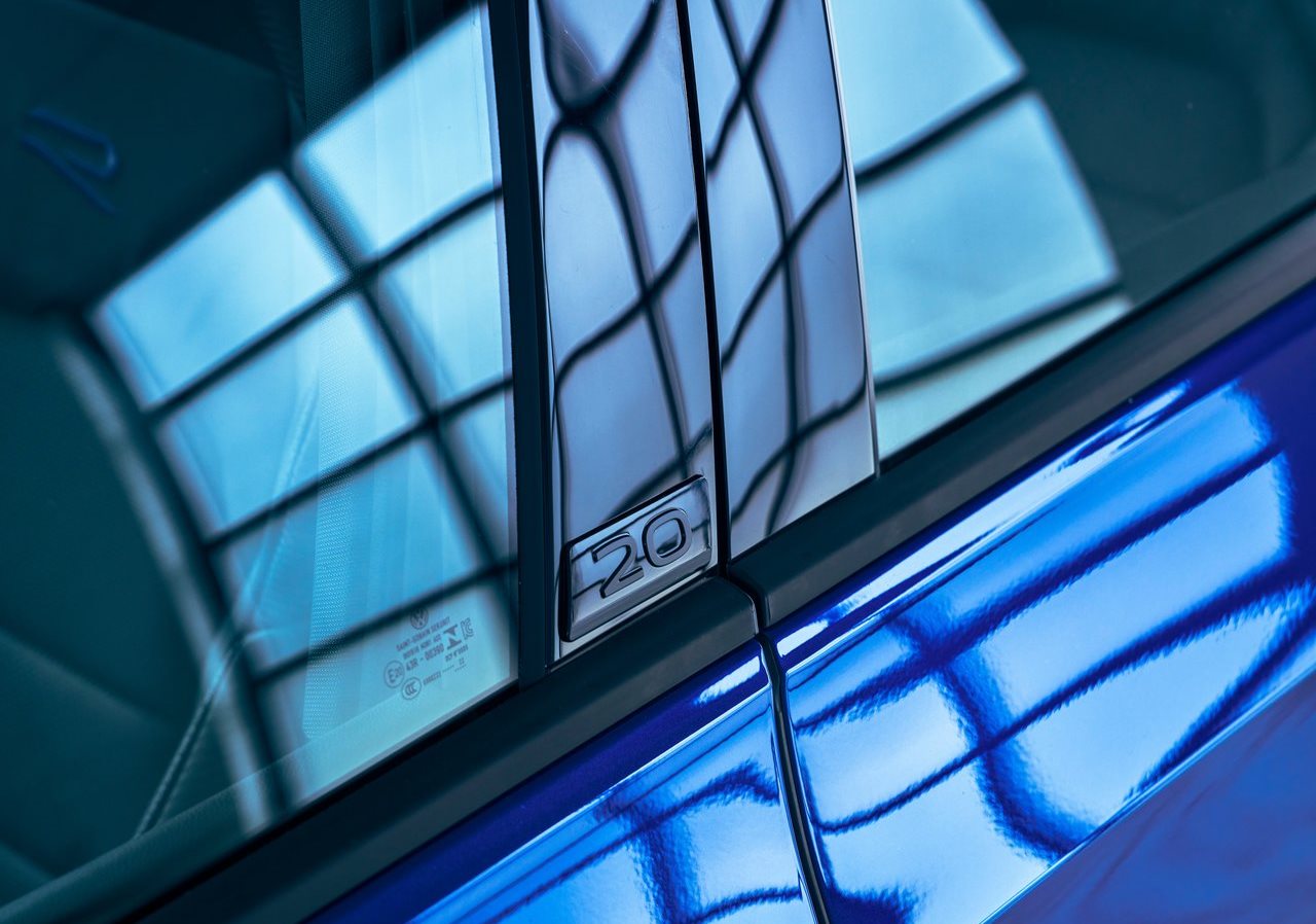 Esta edición «20 Aniversario» se ofrece de serie con transmisión manual de 6 velocidades o, en opción con una transmisión automática DSG de doble embrague y 7 velocidades. Pero además resulta fácilmente reconocible, ya que elimina el techo corredizo de serie: por lo que se reduce el peso del punto más alto del Golf R y se optimiza la línea del techo del hatchback.
