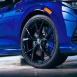 Desde el lateral, se destaca por contar con llantas de 19 pulgadas de diseño «Estoril» aunque en terminación Gloss Black, estando equipadas con neumáticos 235/35. Común a todos los Golf R es el sistema de tracción en las cuatro ruedas con vectorización de torque, que se combina con un sistema de amortiguación adaptativa (DCC).
