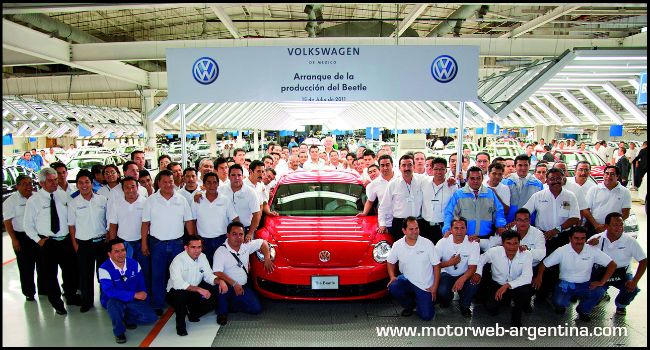 El Beetle había sido presentado al mundo hacía muy poquito, en el Salón de Shanghái de Abril pasado y ya lo teníamos entre nosotros, en el Salón de Buenos Aires. El hecho vuelve a tomar relevancia ya que hace un par de días atrás recién comenzaba oficialmente la producción en serie del nuevo modelo de Volkswagen, en la planta de Puebla, México. La fabricación del Beetle es exclusiva de la planta mexicana de VW, el mayor productor de automóviles de ese país, con 435.000 unidades fabricadas en 2010 entre los modelos Bora, Jetta (Vento), Vento Variant, etc. El modelo es de capital importancia para la marca y más aun en la región Norteamérica, donde el Beetle fue siempre un modelo muy apreciado. Ya desde 1949 hasta 1981 Estados Unidos consumió más de 5 millones de unidades del viejo y querido Escarabajo. Luego, con la llegada del New Beetle en 1997, desde ese año y hasta el 2010 se fabricaron en Puebla 1.15 millones de unidades del simpático modelo. Junto a la construcción actual de la nueva planta de motores de Silao, Mexico se prepara para ser un importante jugador dentro de la estrategia de Volkswagen para el continente americano.
