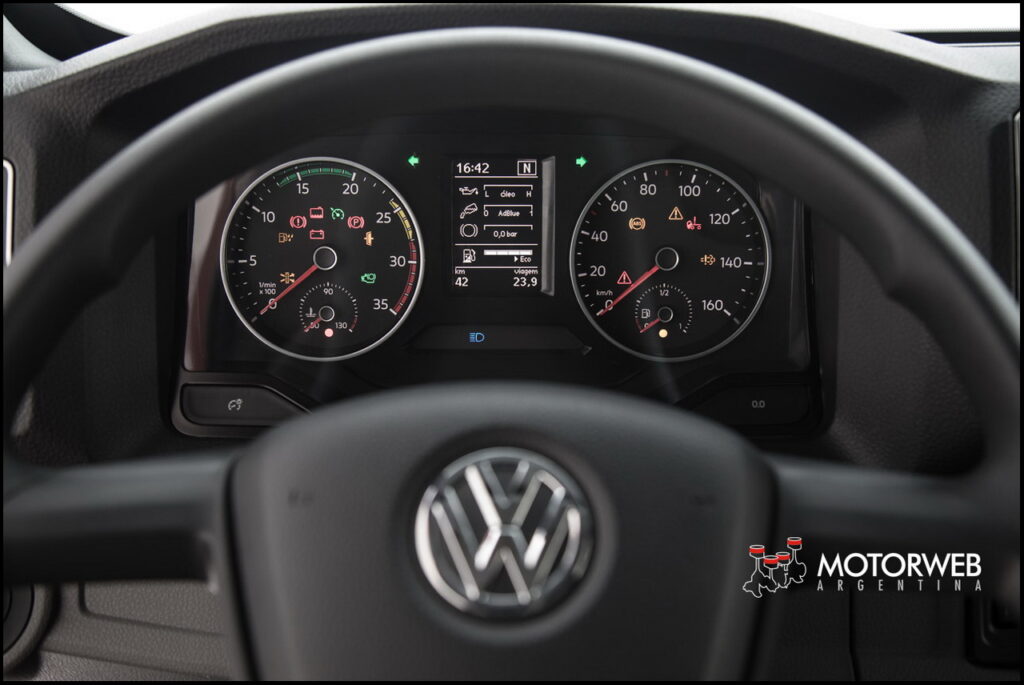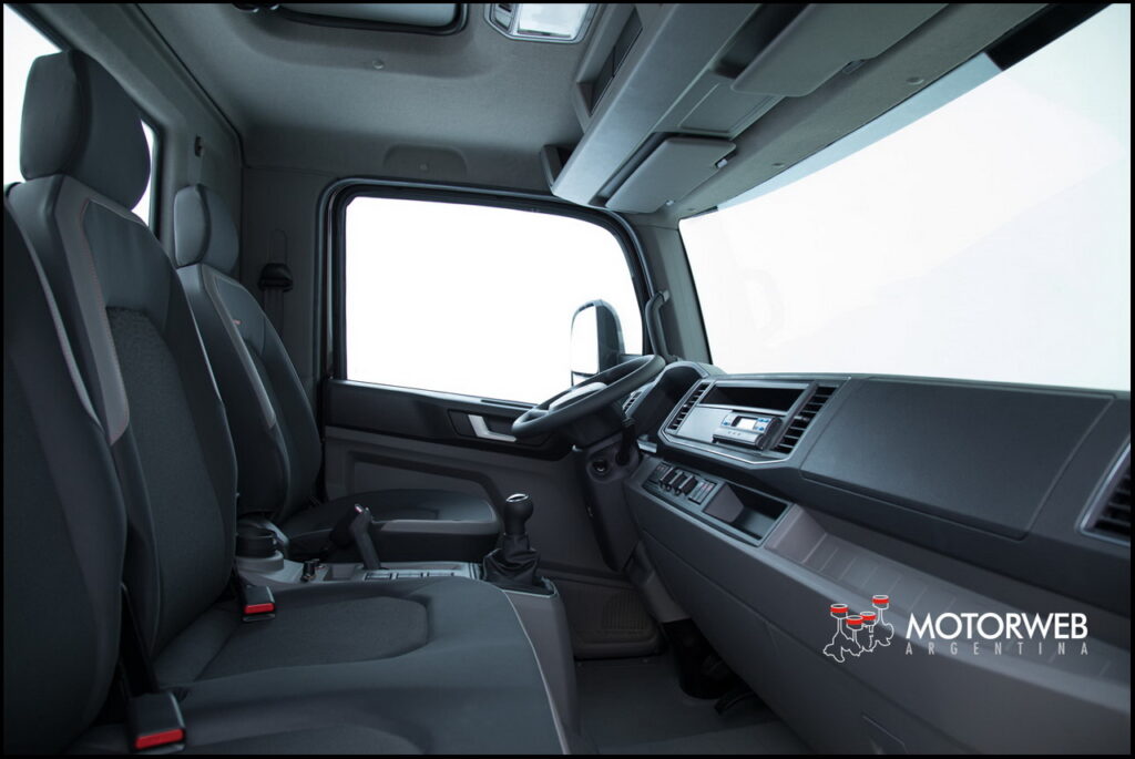 Se destaca el espacio interno, basado en los estándares y dimensiones del grupo Volkswagen. Todas las piezas interiores y las dimensiones de la cabina se perfeccionaron con las mejores soluciones. Como resultado, el espacio de la cabina ofrecido por el nuevo Delivery es un hito en la categoría de 9 y 11 toneladas. El chasis, el motor y la ergonomía del conductor se ofrecen de la forma más equilibrada posible. Los asientos se hicieron de tejidos de alta resistencia e hidrorepelentes, que no se manchan. De colores oscuros, son ideales para el día a día. Y hasta incluso la posición de los pedales fue adecuada al tránsito lento de las entregas urbanas, sin exigir gran esfuerzo al accionarlos, lo que reduce los riesgos de lesión por esfuerzo repetitivo (LER).