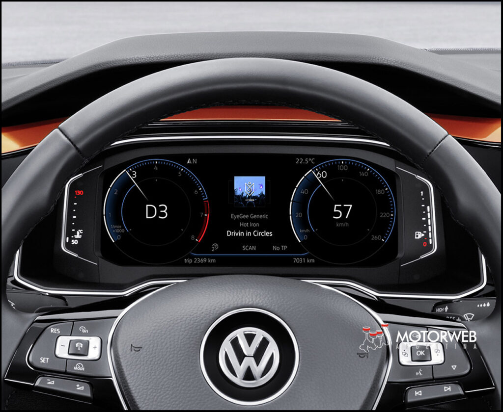 En el interior, dominan las líneas rectas y los ángulos, como hemos visto en los ultimos lanzamiento dle fabricante alemán. Una pantalla central comuna la plancha, que puede ser de entre 6.5 a 8 pulgadas. Además, el inserto decorativo que recorre todo el frente de la plancha puede ser combinado en distintos colores segun el gusto del cliente o la versión. Como novedad, algunas versiones podrían equiparse con el Digital Cockpit, la pantalla digital TFT en lugar del tradicional cuadro de relojes delante del conductor.