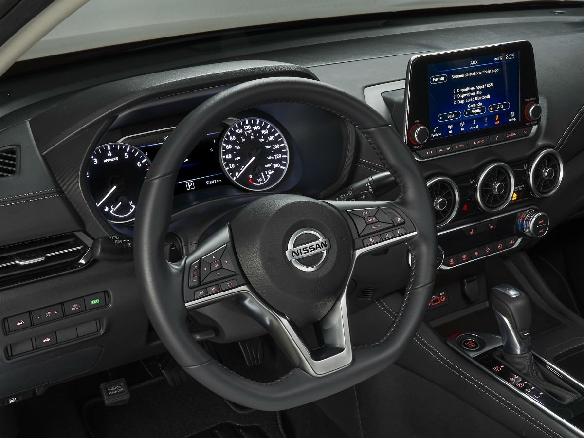 El nuevo Sentra contará en el interior con un mejorado sistema de infotainment, con pantalla central de 8″, conectividad con los sistemas Android Auto y Apple Car Play y navegación por GPS, lo que se suma a conexión vía Bluetooth, tecnología keyless remota y botón de encendido.