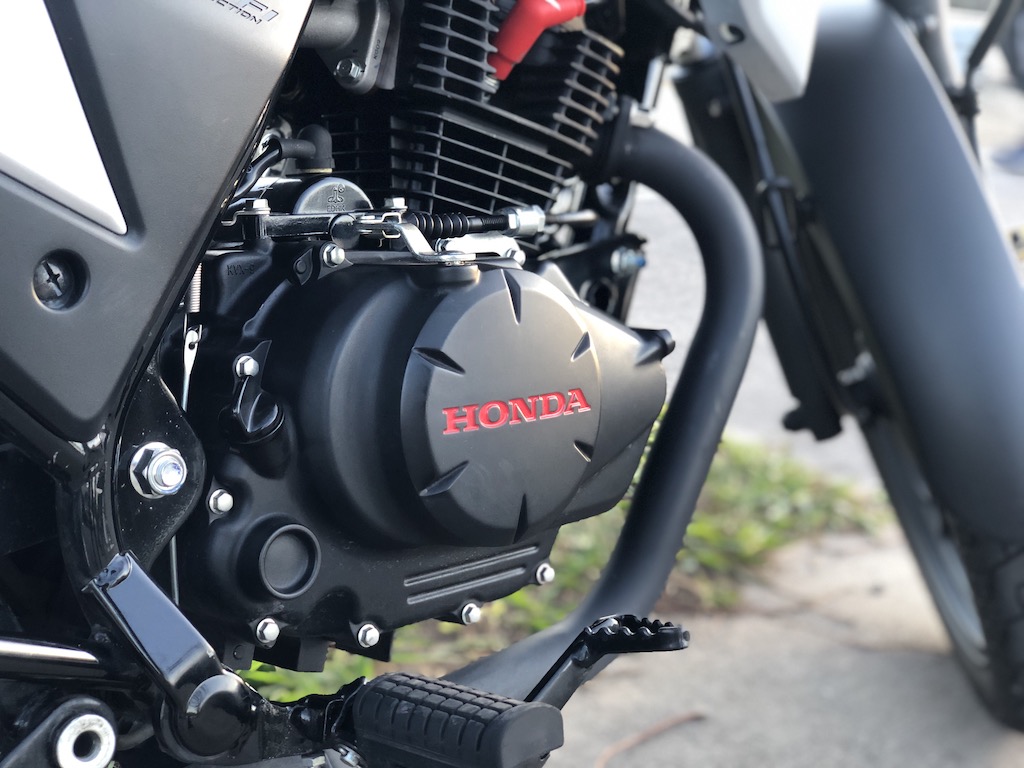 Presenta un monocilíndrico de 149,2 cc de cilindrada con distribución OHC (válvulas a la cabeza) y refrigerado por aire, muy parecido al de la Honda Invicta, pero alimentado por inyección electrónica PGM-Fi, lo que garantiza un correcto funcionamiento y encendido en cualquier época del año. Produce una potencia máxima de 12,2 caballos a 8.000 revoluciones, con un torque de 12,6 NM 6.000 rpm, más que correctos para su tamaño. Todo esto asociado a una caja de cinco marchas bien escalonada. Quizá la primer marcha sea algo corta, pero nada que llegue a volverse molesto.